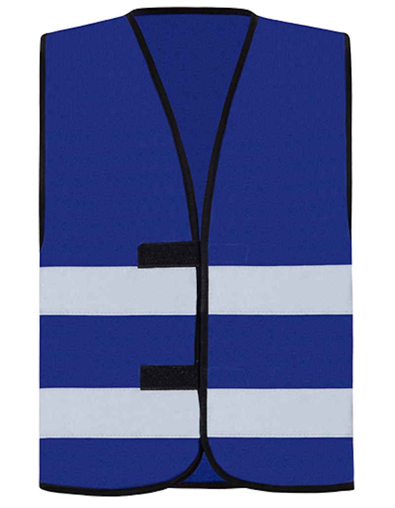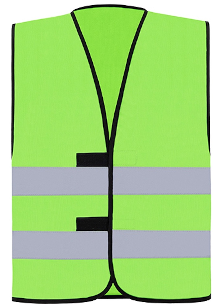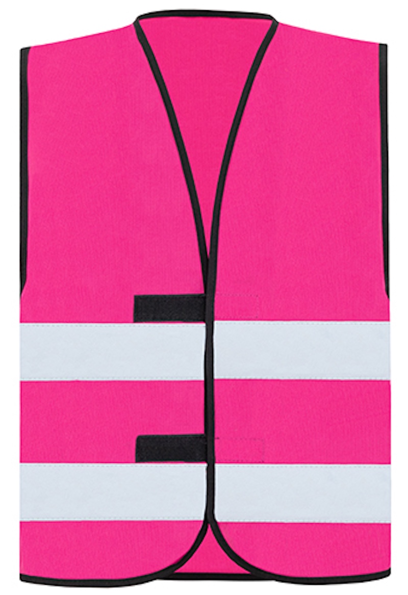 Basic Warnweste Material: 100% Polyester Zwei 5cm breite Reflexstreifen, umsäumt mit schwarzer Polyestereinfassung, Grössenverstellung durch zwei Klettverschlüsse, zertifiziert nach EN ISO 20471:2013 Grössen: S – 5XL