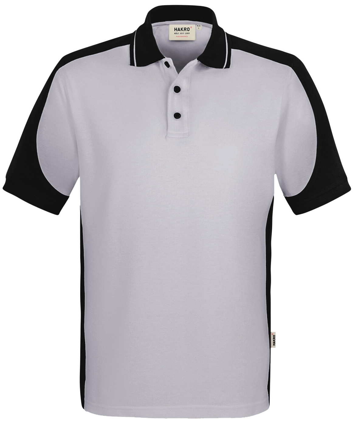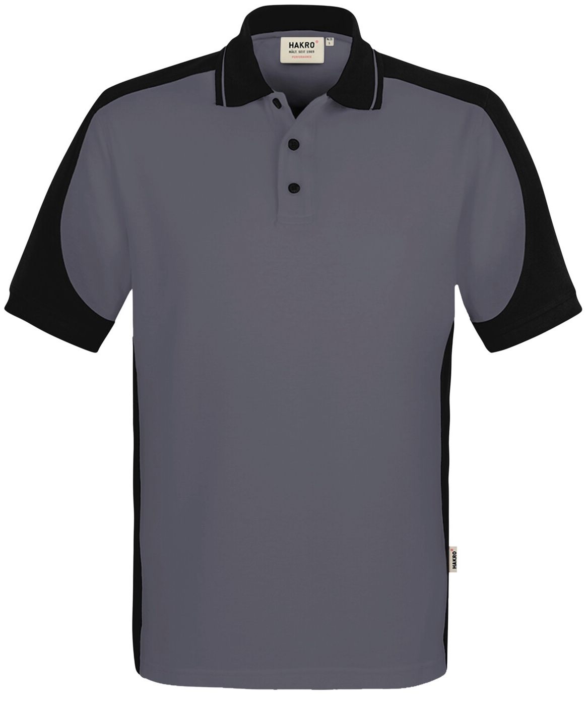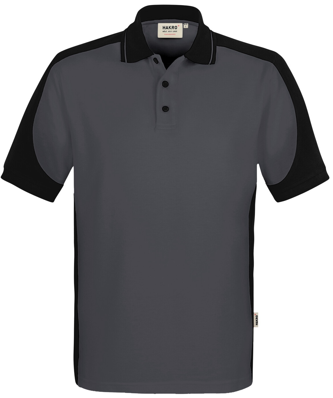 Besonders strapazierfähiges Poloshirt mit Vier-Loch Knopfleiste und Einsätzen in Kontrastfarbe Schwarz an den Seiten, Schultern, Ärmeln und am Kragen sowie kontrastfarbigen, gerippten Ärmelbündchen (Schwarz: Kontrast in Farbe Karbongrau). Doppelt geriegelte Seitenschlitze, Nackenband und Leasingkoller zur einfachen Kennzeichnung in der gewerblichen Wäscherei und Aufhängebänder im Saum. Besonders pflegeleichtes und funktionelles Piqué aus MIKRALINAR® ECO, dem HAKRO Performance-Materialmix aus Baumwolle und GRS-zertifiziertem, recyceltem Polyester. Verfügbar auch als Unisexmodell mit Drei-Loch-Knopfleiste. Normale Passform: Regular Fit.Waschen: 60 °CMaterial: MIKRALINAR® ECO, Piqué aus 50 % Baumwolle und 50 % Polyester (recycelt), 200 g/m²Eigenschaften: Für Industriewäsche geeignet, Einlaufvorbehandelt