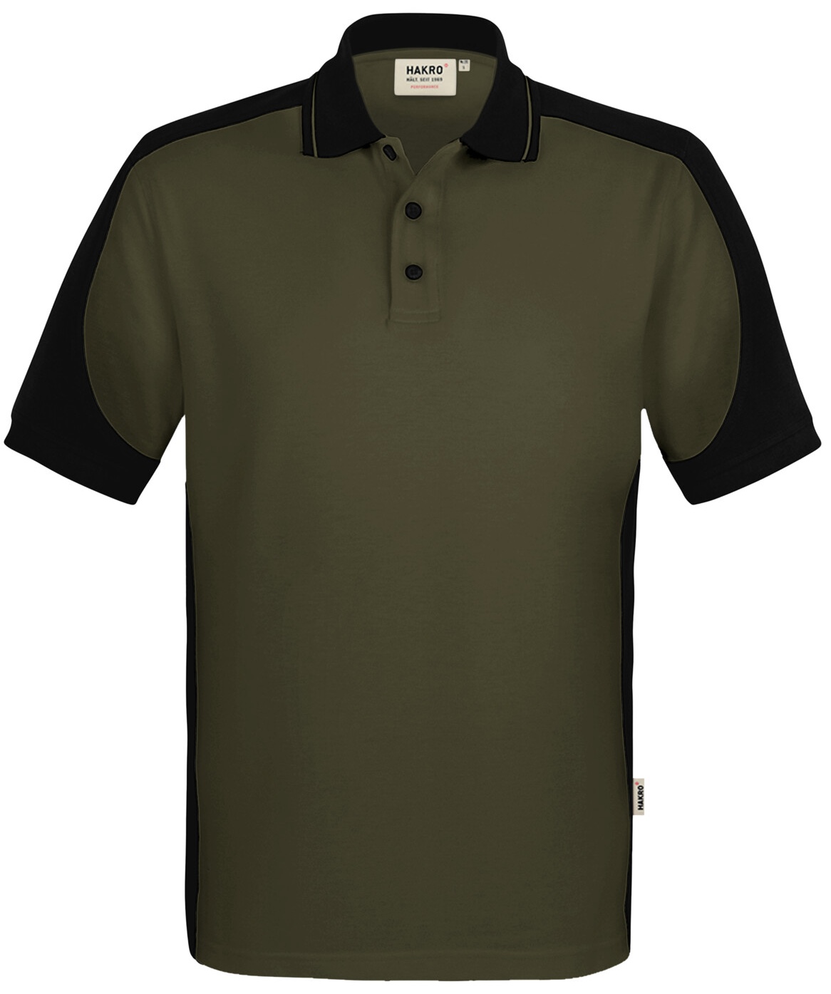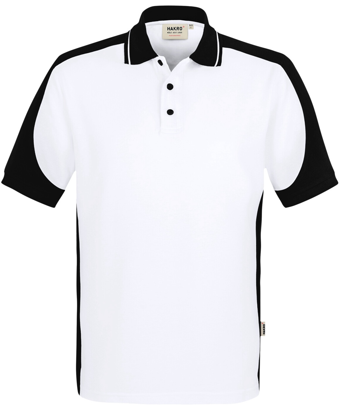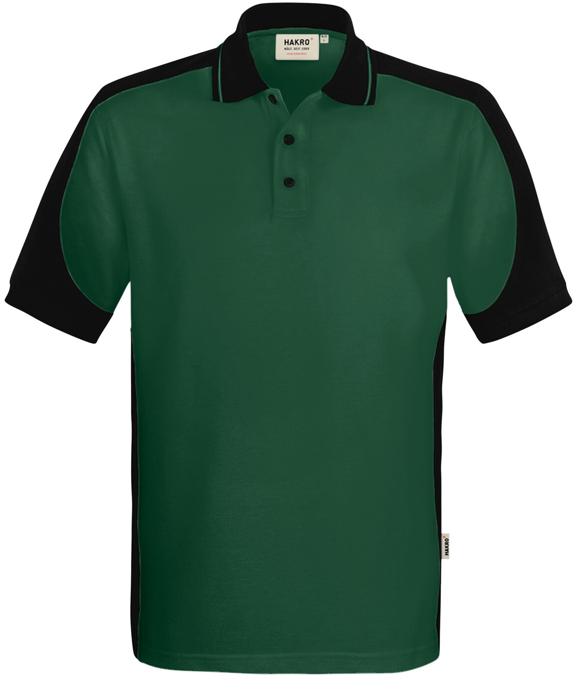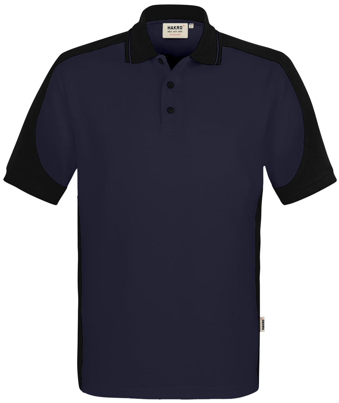 Besonders strapazierfähiges Poloshirt mit Vier-Loch Knopfleiste und Einsätzen in Kontrastfarbe Schwarz an den Seiten, Schultern, Ärmeln und am Kragen sowie kontrastfarbigen, gerippten Ärmelbündchen (Schwarz: Kontrast in Farbe Karbongrau). Doppelt geriegelte Seitenschlitze, Nackenband und Leasingkoller zur einfachen Kennzeichnung in der gewerblichen Wäscherei und Aufhängebänder im Saum. Besonders pflegeleichtes und funktionelles Piqué aus MIKRALINAR® ECO, dem HAKRO Performance-Materialmix aus Baumwolle und GRS-zertifiziertem, recyceltem Polyester. Verfügbar auch als Unisexmodell mit Drei-Loch-Knopfleiste. Normale Passform: Regular Fit.Waschen: 60 °CMaterial: MIKRALINAR® ECO, Piqué aus 50 % Baumwolle und 50 % Polyester (recycelt), 200 g/m²Eigenschaften: Für Industriewäsche geeignet, Einlaufvorbehandelt