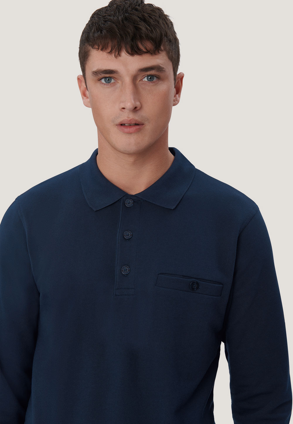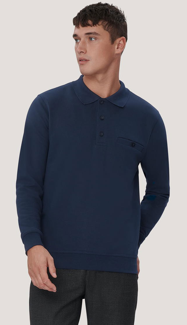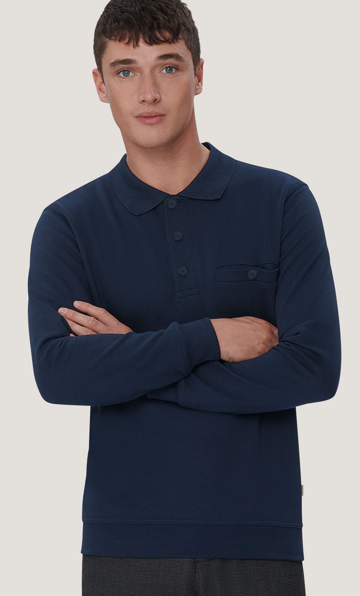 Klassischer Polo-Sweater mit hochwertig verarbeiteter 3-Loch-Knopfleiste mit extrahaltbar angenähten, bruchsicheren Knöpfen, Ton in Ton, Brusttasche mit Knopfverschluss, Ersatzknopf, formstabilen Bündchen mit LYCRA®-Anteil, nicht angerauter Innenseite (French-Terry) und Nackenband. Hergestellt aus pflegeleichter Baumwolle-Polyester-Mischung für höchste Ansprüche. Gewebtes HAKRO-Necklabel aus hochwertigem Kettsatin mit weichen, ultraschallgeschnittenen Bandkanten für höchsten Tragekomfort und gewebtes HAKRO-Flaglabel an der linken Seitennaht.