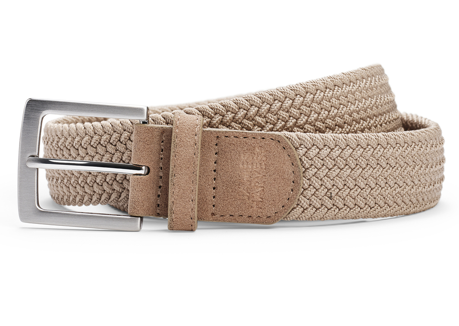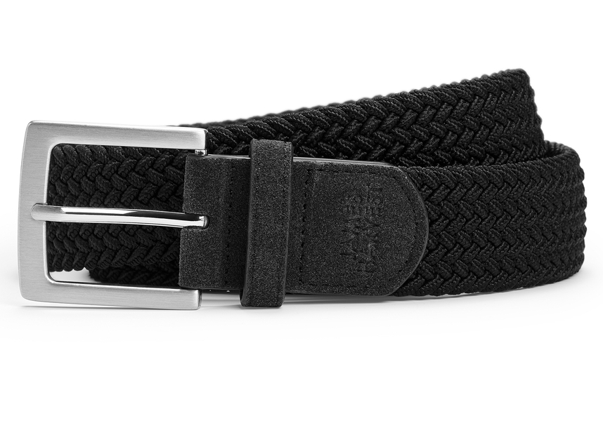 Geflochtener, elastischer Gürtel mit Metallschnalle. Verpackt in einer exklusiven Geschenkbox.