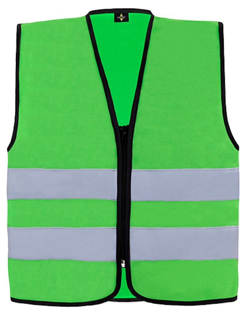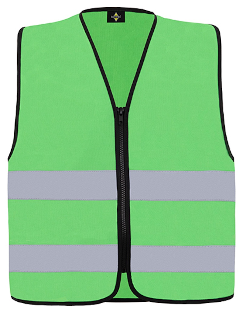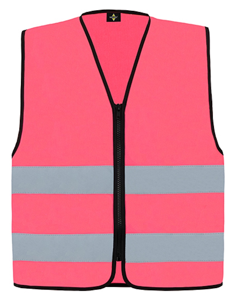 Funktionsweste Material: 100% Polyester Zwei 5cm breite Reflexstreifen um den Körper, Grössenverstellung durch zwei Klettverschlüsse, umsäumt mit schwarzer Polyestereinfassung Grössen: S – 7XL(Fabe Rosa nur in L, XL und XXL)