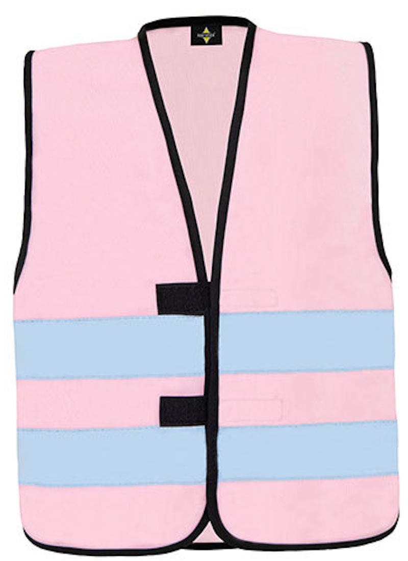 Funktionsweste Material: 100% Polyester Zwei 5cm breite Reflexstreifen um den Körper, Grössenverstellung durch zwei Klettverschlüsse, umsäumt mit schwarzer Polyestereinfassung Grössen: S – 7XL(Fabe Rosa nur in L, XL und XXL)