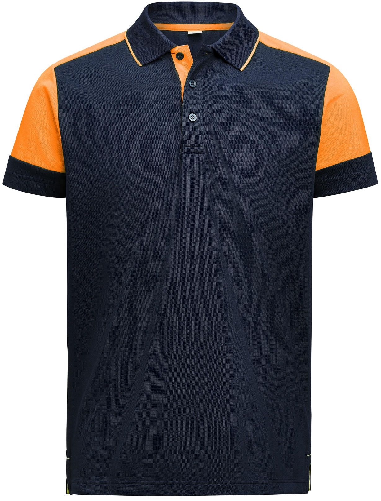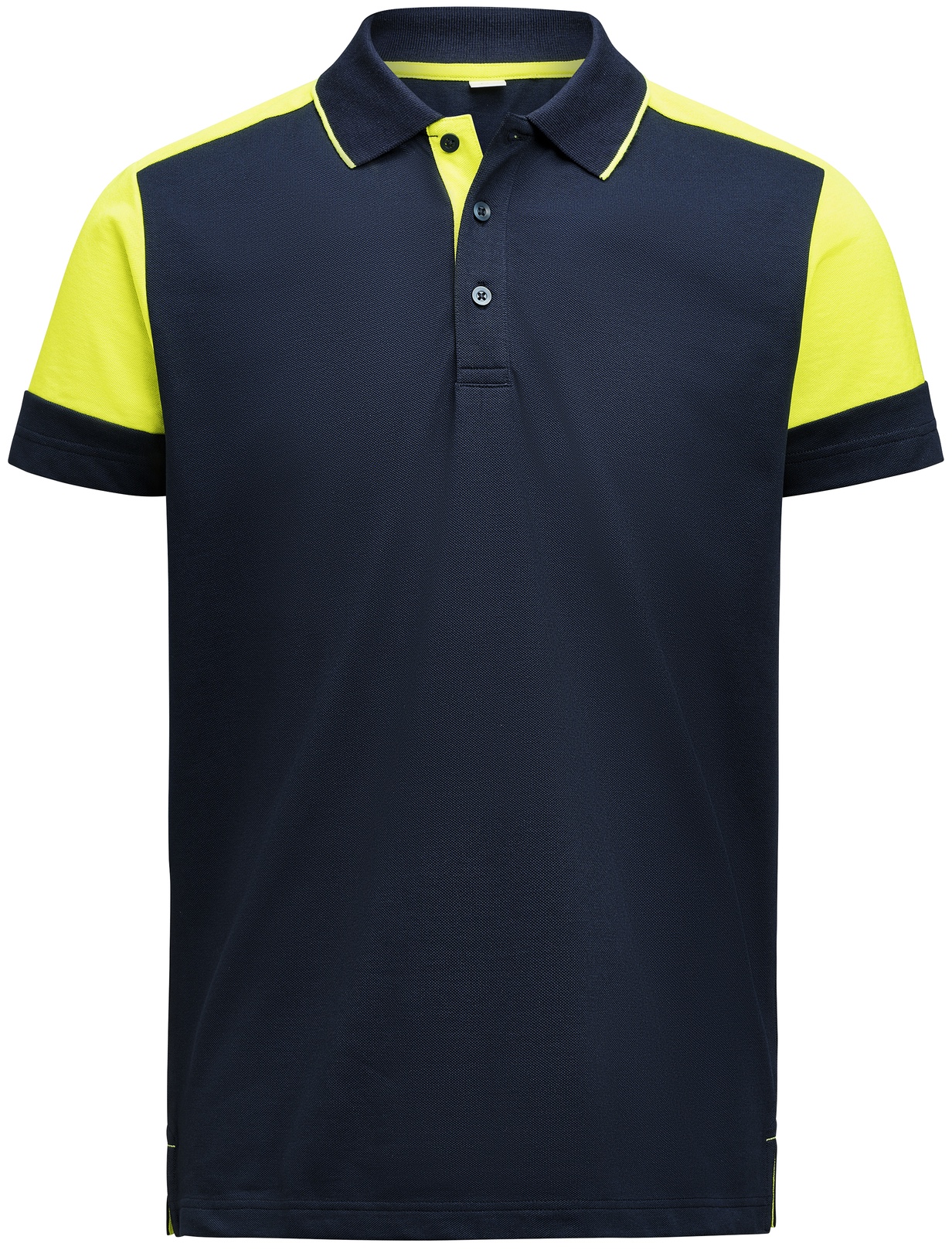 Bicolor-Piqué mit drei Knöpfen und Kontraststreifen im Kragen.