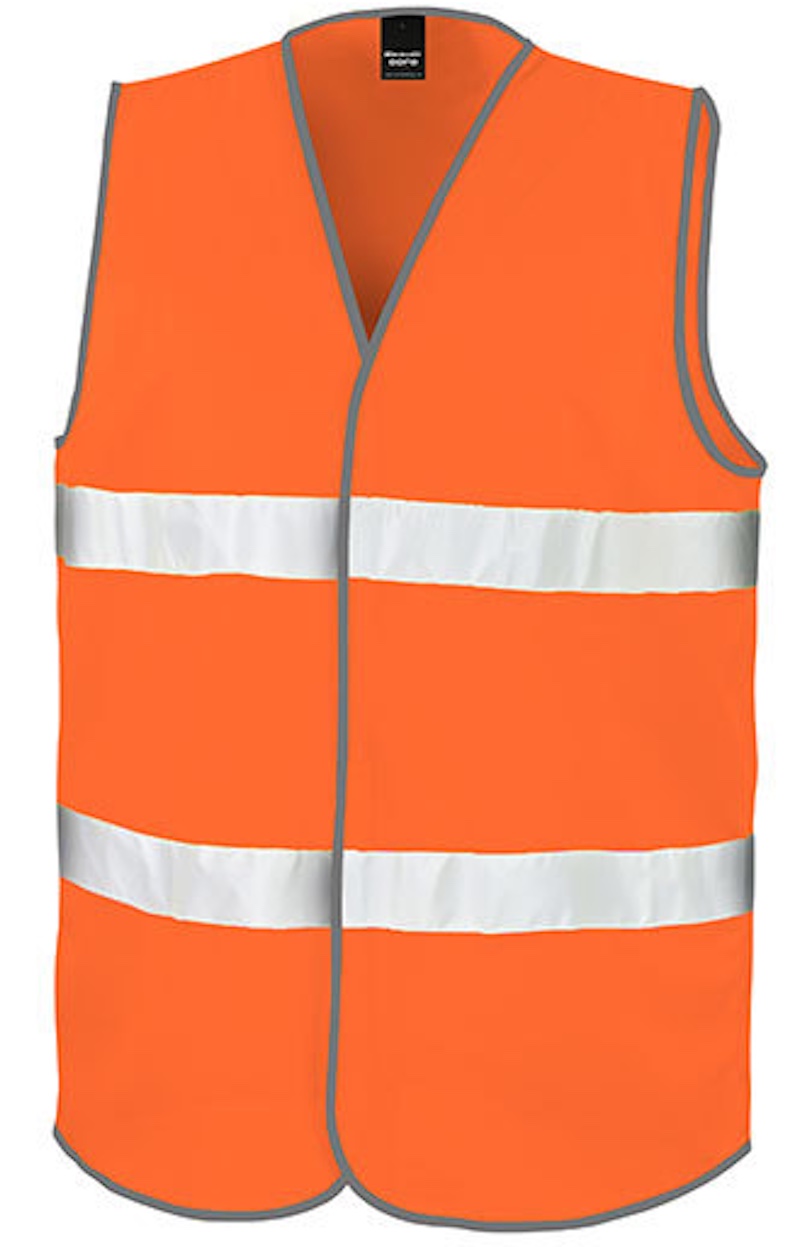 Entspricht den Anforderungen für ISOEN20471:2013, Klasse 2, Säume grau eingefasst, 50mm breite aufgenähte Sicherheitsbänder, großzügiger Schnitt